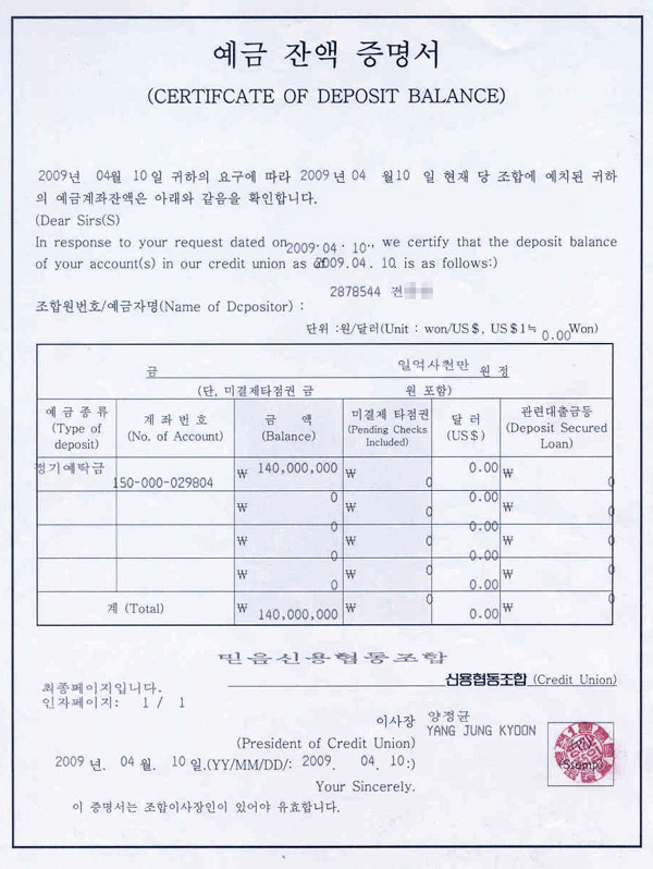 - 유학 및 비자 신청 시 재정능력 증명