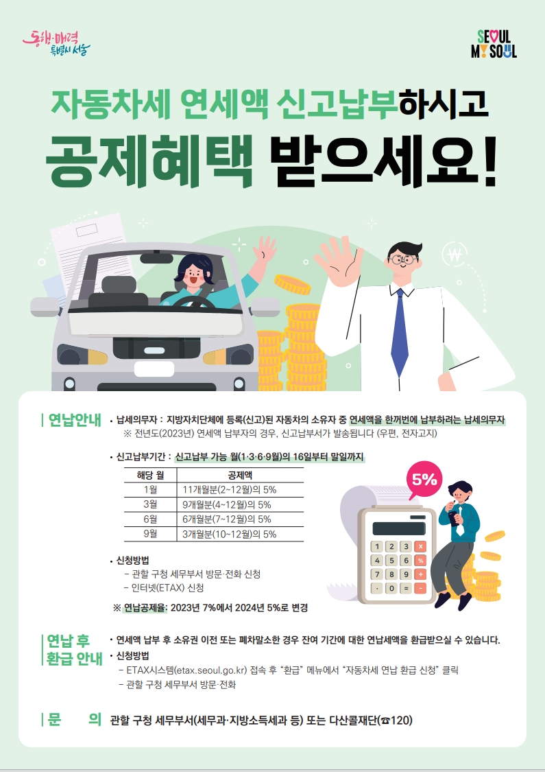 - 매년 초 자동차세 연납 시 혹시 모를 매각이나 폐차에 대비해 환급 절차를 숙지해두세요.