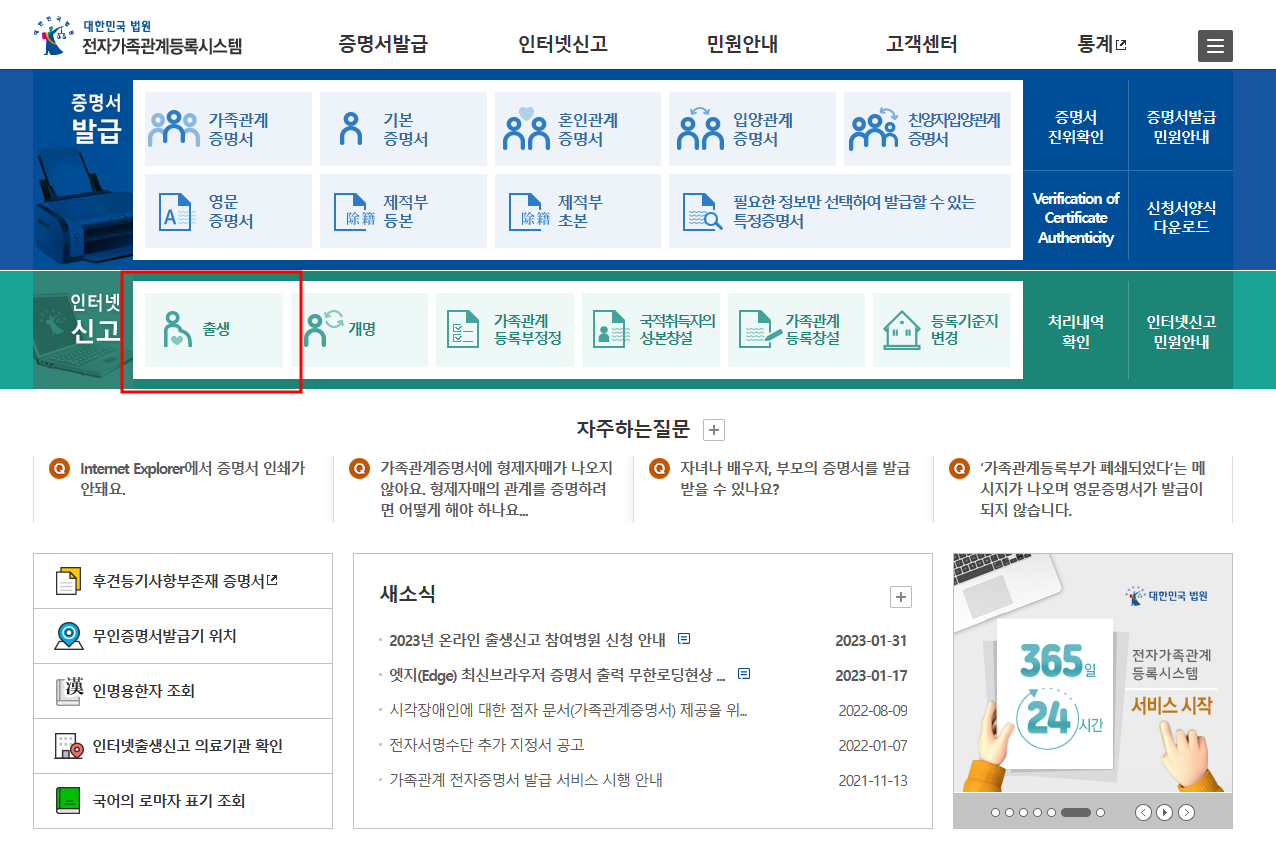 출생증명서 온라인 발급 관련 자주 묻는 질문