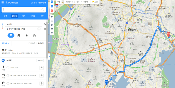 - 카카오맵 택시 요금 계산: 길찾기 실행 후 택시 선택 시 요금 확인 가능