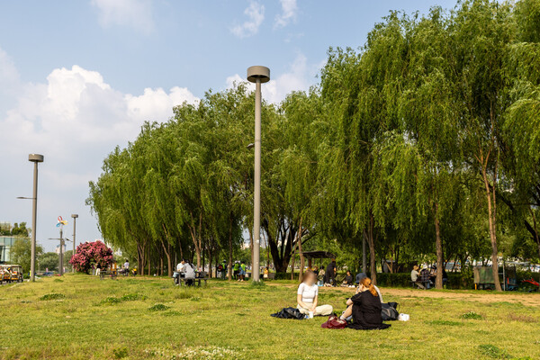 노들섬의 대표 피크닉 장소인 노들마당 잔디언덕은 서울 도심과 한강의 파노라마 뷰를 감상할 수 있는 최적의 장소입니다. 특히 2025년에는 새롭게 조성된 그늘쉼터로 더욱 쾌적한 피크닉이 가능해졌습니다.