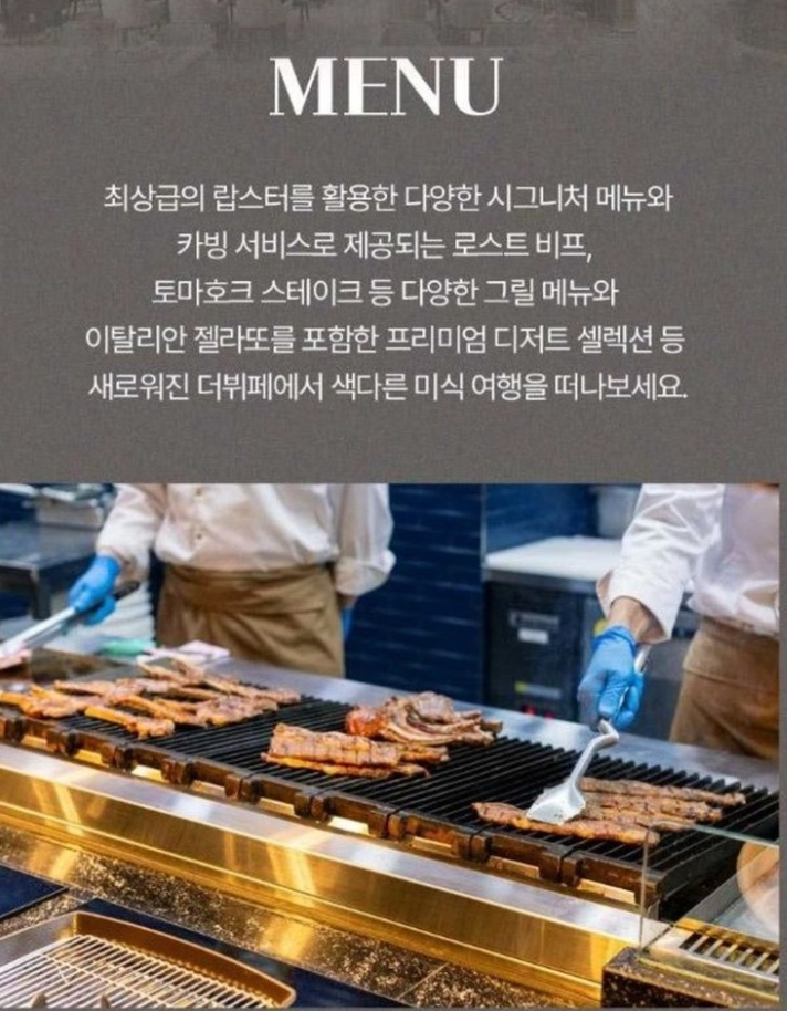 - 프리미엄 해산물 코너: 최상급 랍스터와 대게, 제철 생선회